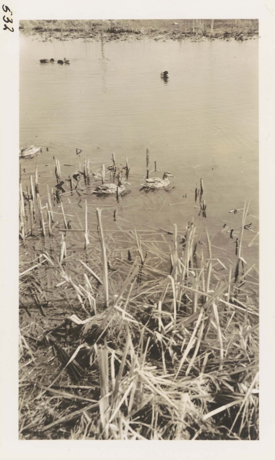 Ducks near new State Gun Club clubhouse. Negative #: 532. Locality: Farmington Bay. [This information comes from separate paper with information about negatives #531 -- #535].