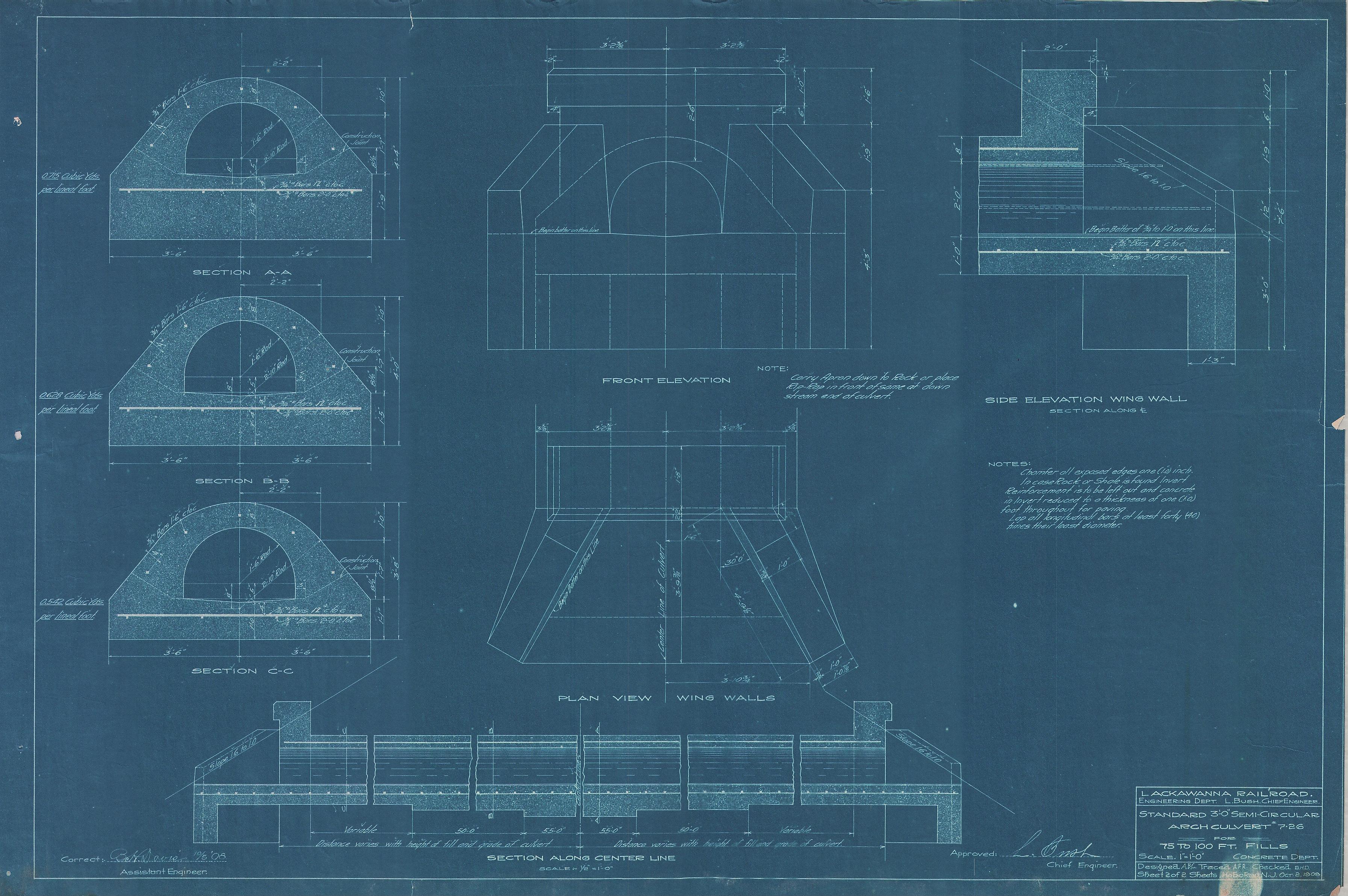 Standard 3 foot semi-circular arch culvert #7.26 for 75-100 foot fills [1908.10.02] Sheet no. 2 of 2