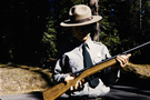 U.S. Park Police holding a gun in Glacier National Park.