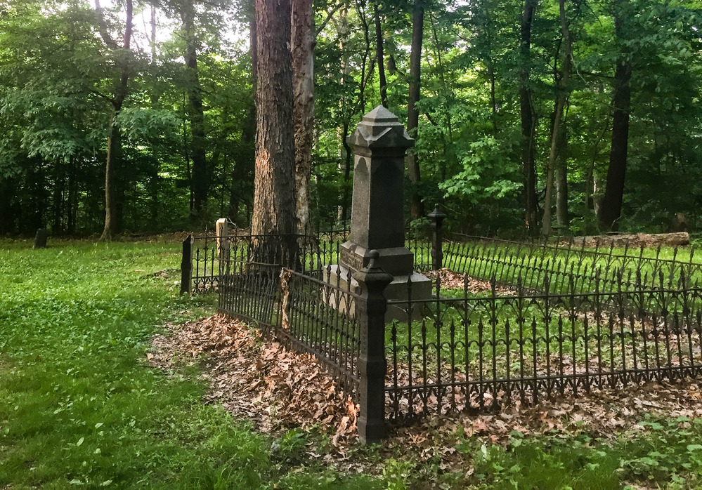 Stone marker surrounded by an iron fence