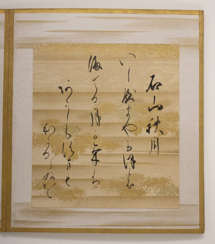 Decorated paper with a poem card in Japanese calligraphy placed in the center.
