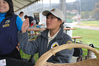 A woman wearing Anza Trail volunteer hat and jacket holds her hand up to swear in a Junior Ranger