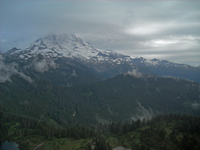 A stormy Mount Rainier viewed from Tolmie Peak lookout.