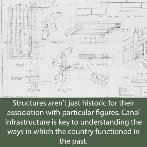 "Structures aren’t just historic for their association with particular figures. Canal infrastructure is key to understanding the ways in which the country functioned in the past." Technical drawings in the HSR giving precise details about the design of the canal locks (page 9).