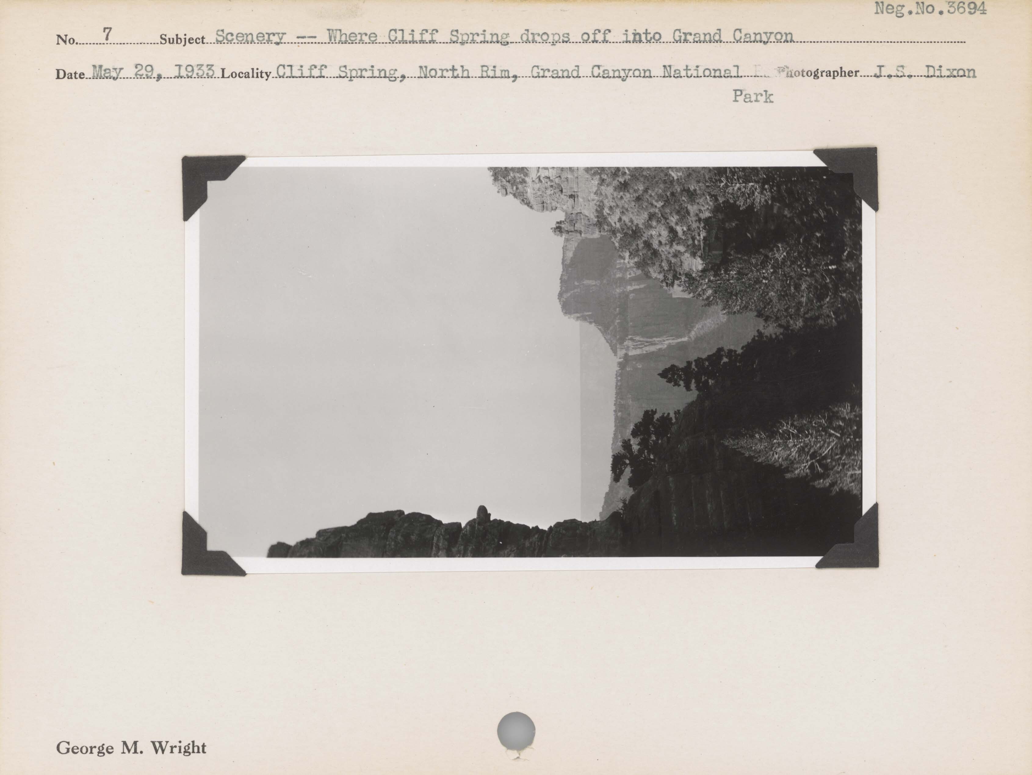 Scenery: Where Cliff Spring drops off into Grand Canyon. Negative #: 3694. Locality: Cliff Spring, North Rim, Grand Canyon National Park.