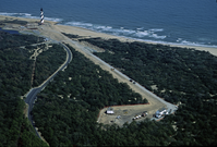 A view of the new site on March 24th, 1999 shows the Principal Keeper's Quarters in place. The Double Keepers' Quarters, which moved first, had to wait so the Principal Keeper's Quarters could get into place.