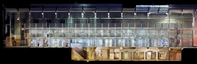Photographic rendering of side view of Section A in Alcatraz with Citadel basement rooms below and cellblock rooms above