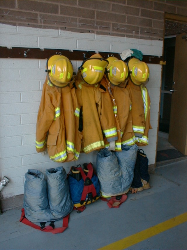 Fire engines at Ash Mountain Headquarters Fire Station, Sequoia and Kings Canyon National Parks, May 2002