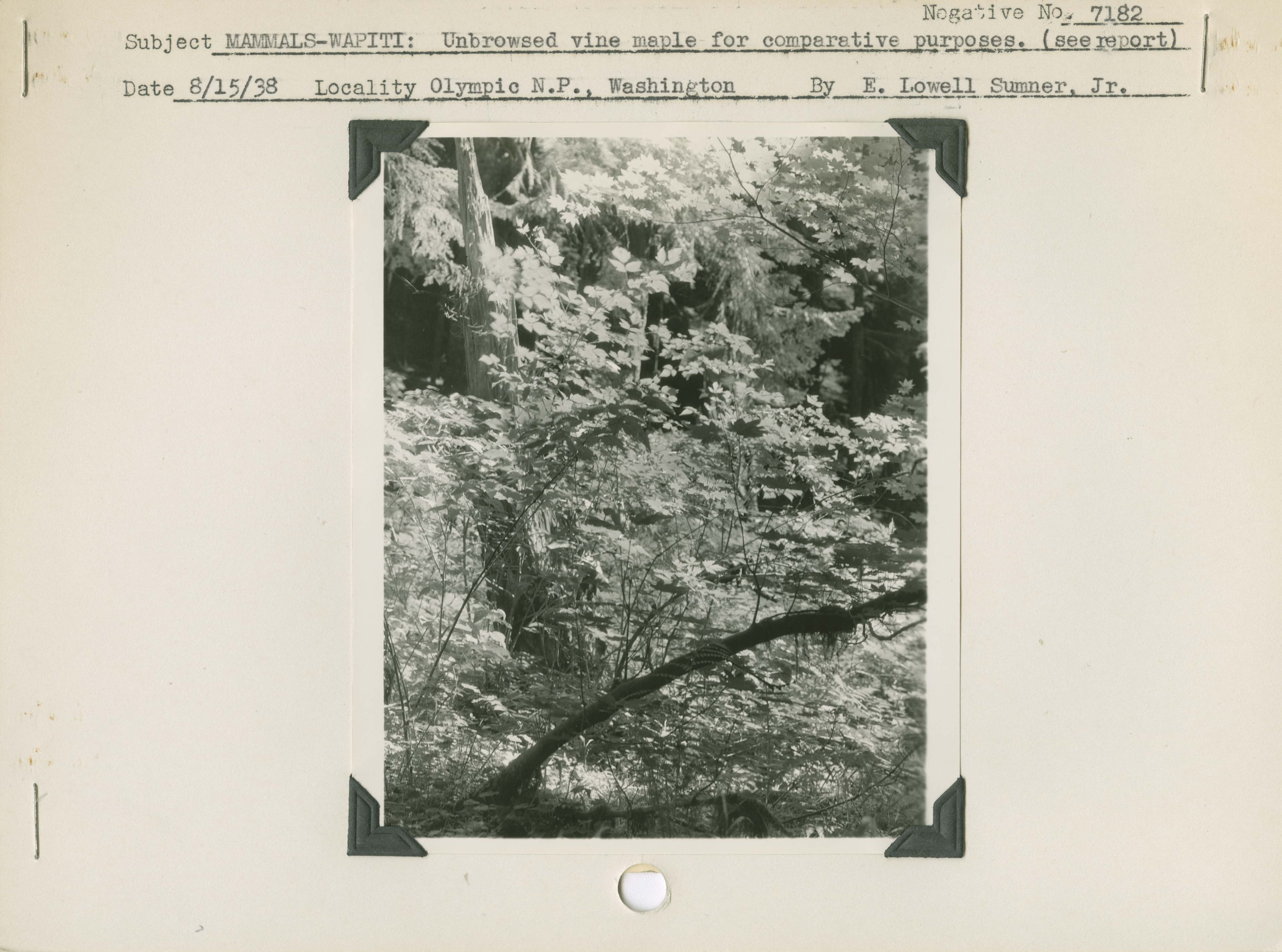 Mammals- Wapiti [Elk]: Unbrowsed vine maple for comparative purposes. (See report). Negative #: 7182. Locality: Olympic National Park, Washington.