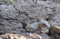 The plains spadefoot toad is nocturnal and secretive, only emerging during rains or for the moist springtime. They spend dry seasons in estivation, a state of dormancy similar to hibernation & marked by inactivity and a lowered metabolic rate. Estivation is important because it helps the toad, which is an amphibian, avoid damage from high temperatures and desiccation while also allowing its physiological state to be rapidly reversed to the animal's normal state when opportunity arises. Spadefoot toads got their common name from a spade-like projection on their hind legs which allows them to dig into sandy soils.