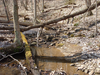 Site visit photo showing the upstream (UP) or downstream (DN) view of a wadeable stream reach taken during benthic macroinvertebrate monitoring at Friendship Hill National Historic Site.