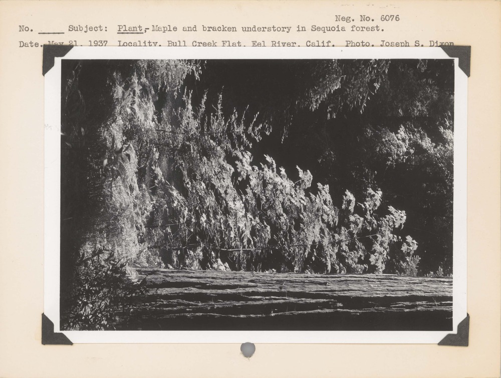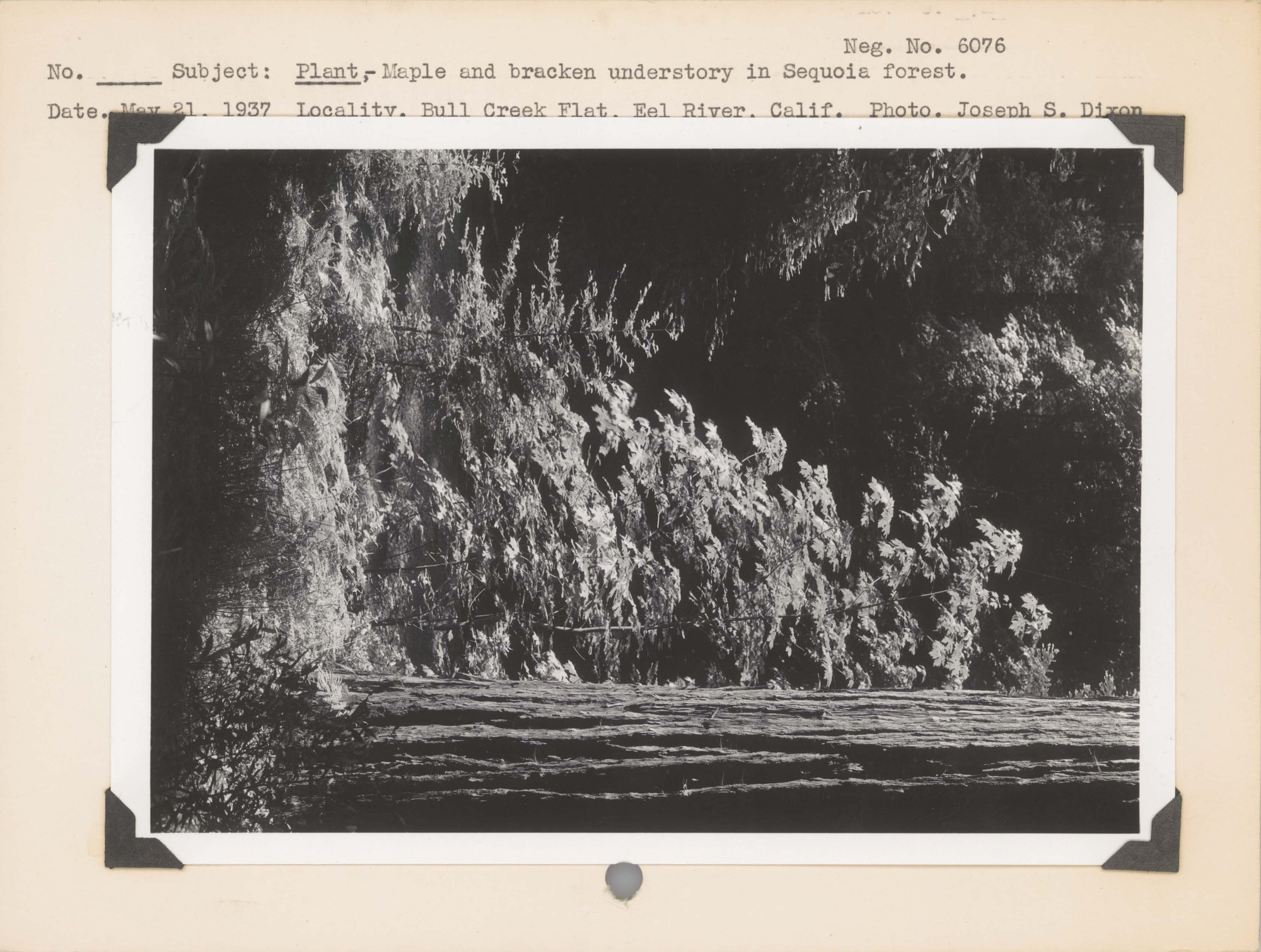 Plant--Maple and bracken understory in Sequoia forest. Locality: Bull Creek Flat, Eel River, California. Negative #: 6076