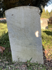 Back of historic upright marble headstone with recessed shield with recessed lettering face.