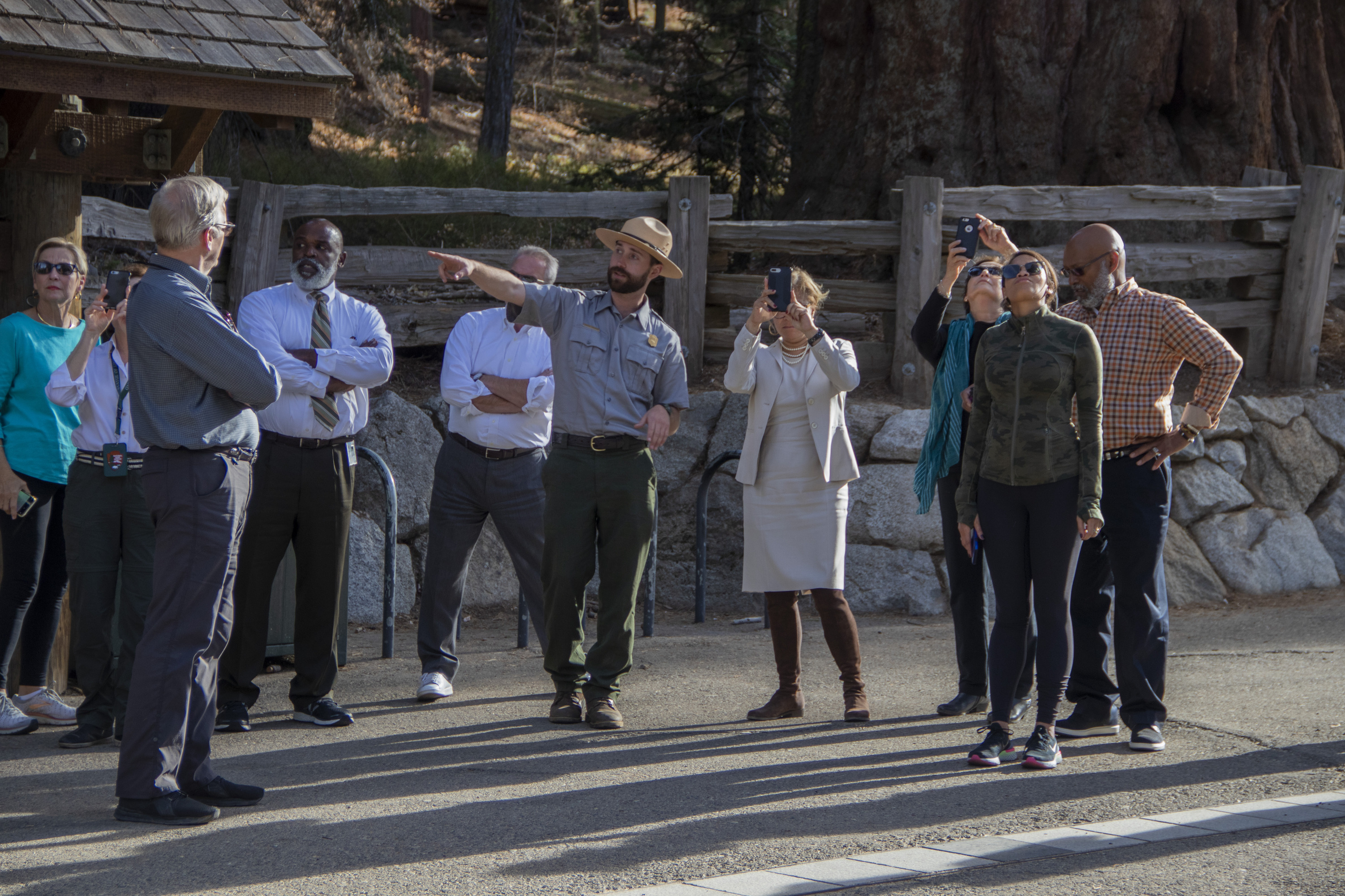 A ranger at Sequoia Kings Canyon National Park points out important sites within the park to Foundation members.