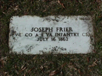 Headstone for Joseph Frier in Poplar Grove National Cemetery