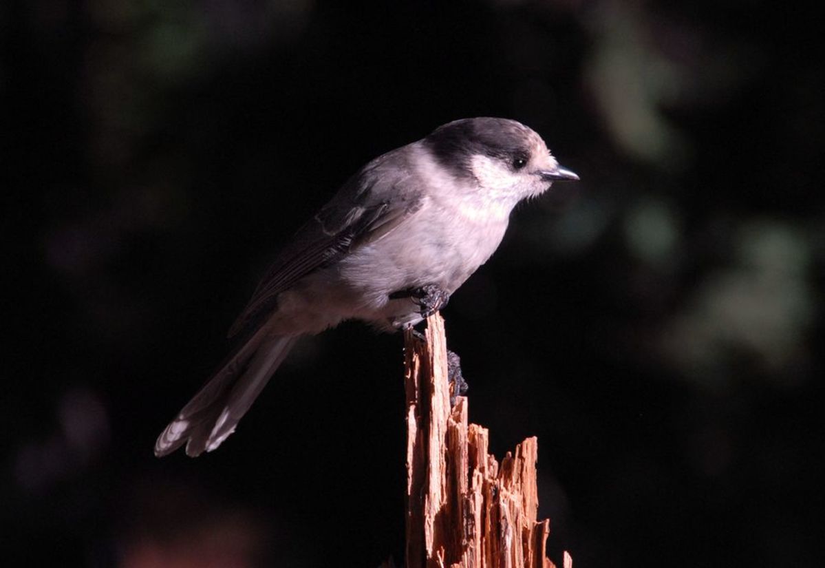 Gray Jay on tree stump in Crater Lake NP, 2009