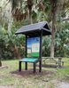 a small roof over a panel with a map and a tactile map below