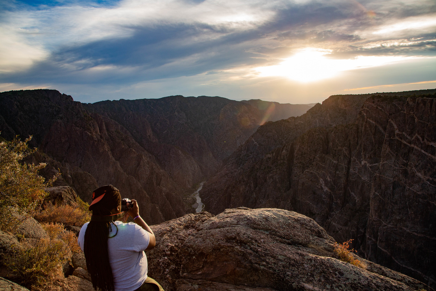 Photographer taking a picture of a river and canyon
