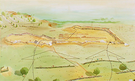 Aerial view of Balcarres Redoubt facing east highlighting the positions of the American Continental soldiers assaults, the present tour road, and the present tour path.