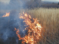 Low intensity flames in grasses during Far View prescribed fire, November 2001