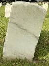Back of historic upright marble headstone with recessed shield face.
