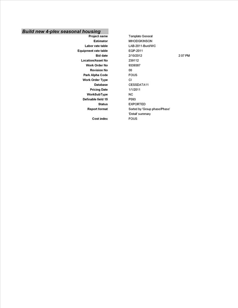 CESS Estimate #1 PMIS192068-2014