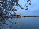 Thomas Jefferson Memorial across the Tidal Basin from cherry blossoms before dawn