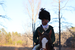 A single living historian dressed as a member of the legion cavalry is mounted and is getting ready for a cavalry demonstration.