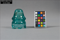 INSULATOR, CLEAR GREEN GLASS. INSCRIPTION IN RAIS