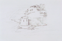 Probable appearance of El Morro's 1539 tower. At one time, this tower stood alone as the only defensive structure protecting the entrance to San Juan.