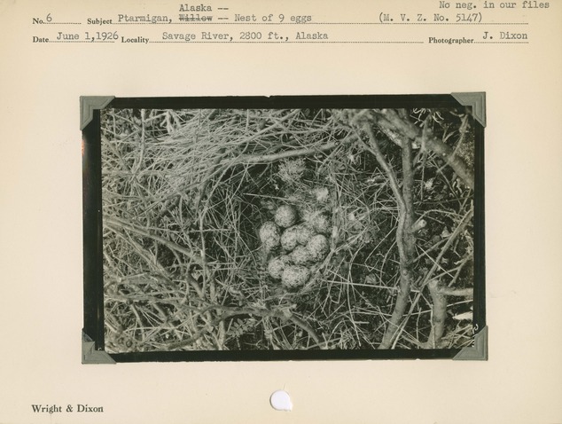 Ptarmigan, Alaska -- Nest of 9 eggs. Locality: Savage River, 2800 feet, Alaska. Negative #: mvz5147