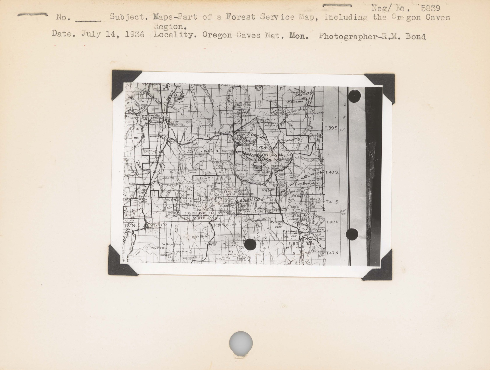 Maps--Part of a Forest Service map, including the Oregon Caves Region. Locality: Oregon Caves National Monument [Oregon Caves National Monument & Preserve]. Negative #: 5839