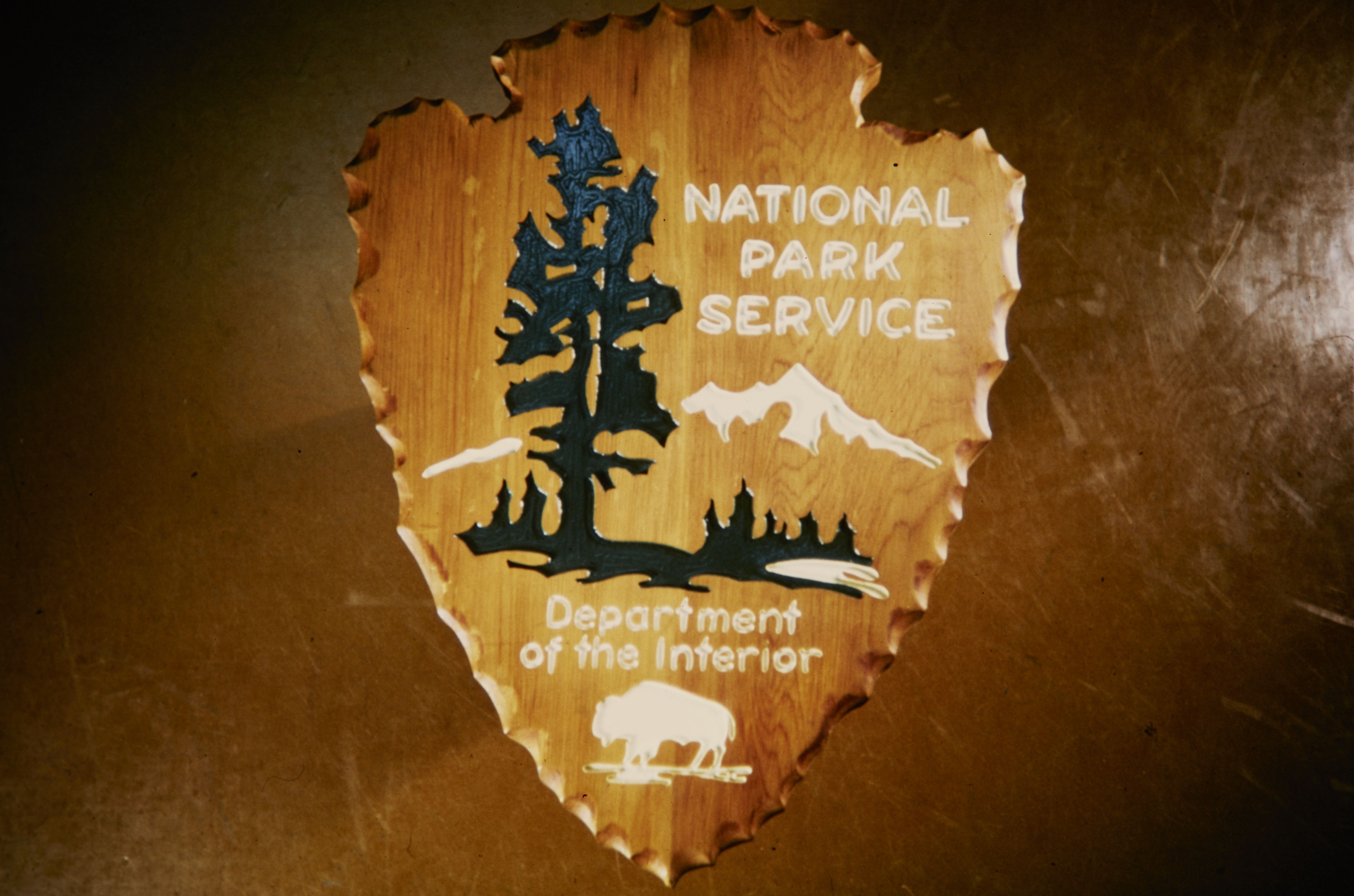 NPS arrowhead with Department of the Interior written on it above the bison.