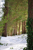 Snow-covered, tree-lined trail, Carl Sandburg Home National Historic Site, 2016.