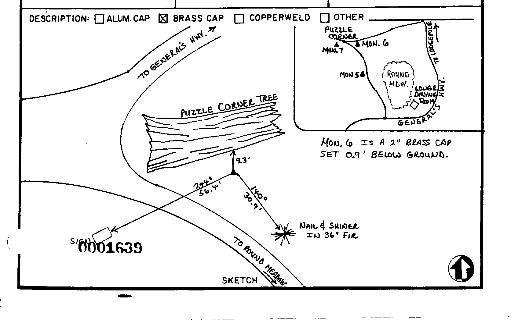 Survey monument record sheet, Sketch number: 00001639