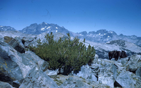 [Peaks - Minaret Range]. Minarets & Ritter from Post Pk [Peak] Pass. 8/45. Yosemite Original. MVW [Copyright Unknown]. A2513. A-26-43-064