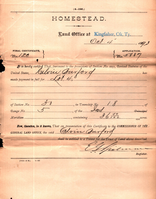 Yellowing scanned handwritten Homesteading case file. Transcribed text from the scan is found in the image description. Shadowing shows where the document was folded in three parts.