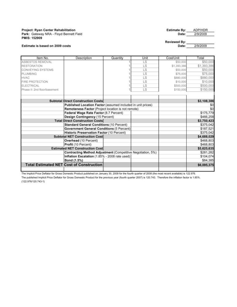 Class C Estimate Ryan Center Phase 2