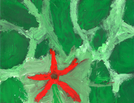 painting of a red petaled flower with green background