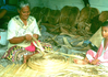 Photo of Fitiuta woman weaving fine mat with lau fala