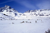[Peaks - Minaret Range]. Glacier Pass and Banner Peak. 5/1970. Yosemite Original. WR Jones [Copyright Public Domain]. A-2571. A-26-43-013