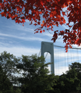 Fall foliage at Fort Wadsworth, with the Verrazano Narrows Bridge in the background.