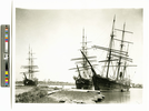 View includes BOWHEAD (built 1882; steamer-bark, 3m: whaler), BELUGA (steam whaler) and THRASHER (built 1883; barkentine, 3m). Sunset Lumber Co. visible in the background. Gift - Robert Weinstein 10/60.