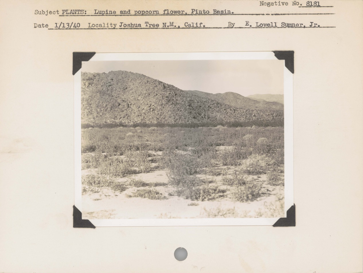 Plants--Lupine and popcorn flower. Locality: Pinto Basin, Joshua Tree National Monument, California [Joshua Tree National Park]. Negative #: 8181