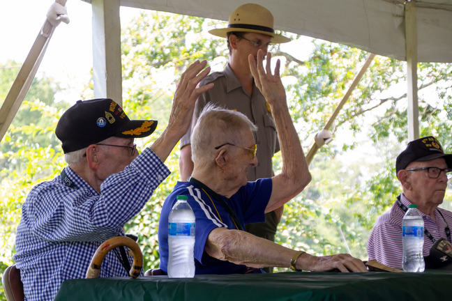 WWII Weekend 2022 Veteran's Roundtable in the Speakers Tent: WWII veterans speaking on their experiences.