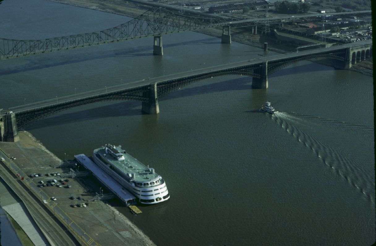 Admiral, riverfront, Eads and Martin Luther King Bridges.