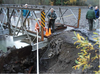 Park staff work to repair damaged abutment on the Finley Creek Bridge, a major link on the Quinault Loop Road.
