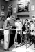 California Pacific International Exposition. San Diego Exposition; Guide showing visitors through CCC (Civilian Conservation Corps) display. Frost, in smock, is making a cast of his hand. (Demonstration/Model Civilian Conservation Corps Camp created in San Diego for public information).