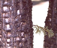 A detailed photograph of Alligator juniper with back and leaf detail.