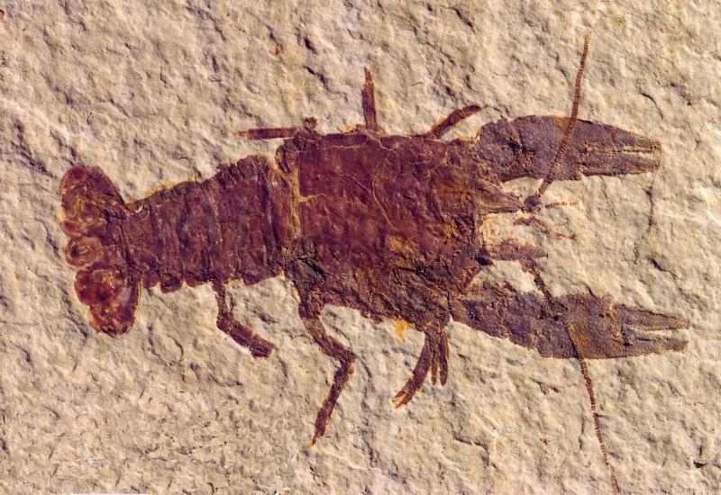 Crayfish lived in the shallow, near-shore water of Fossil Lake and are known only from Eocene lake deposits. The closest living relative of Procambarus is Austrocambarus, found in Mexico. This Procambarus primaevus specimen is approximately 5-cm long.